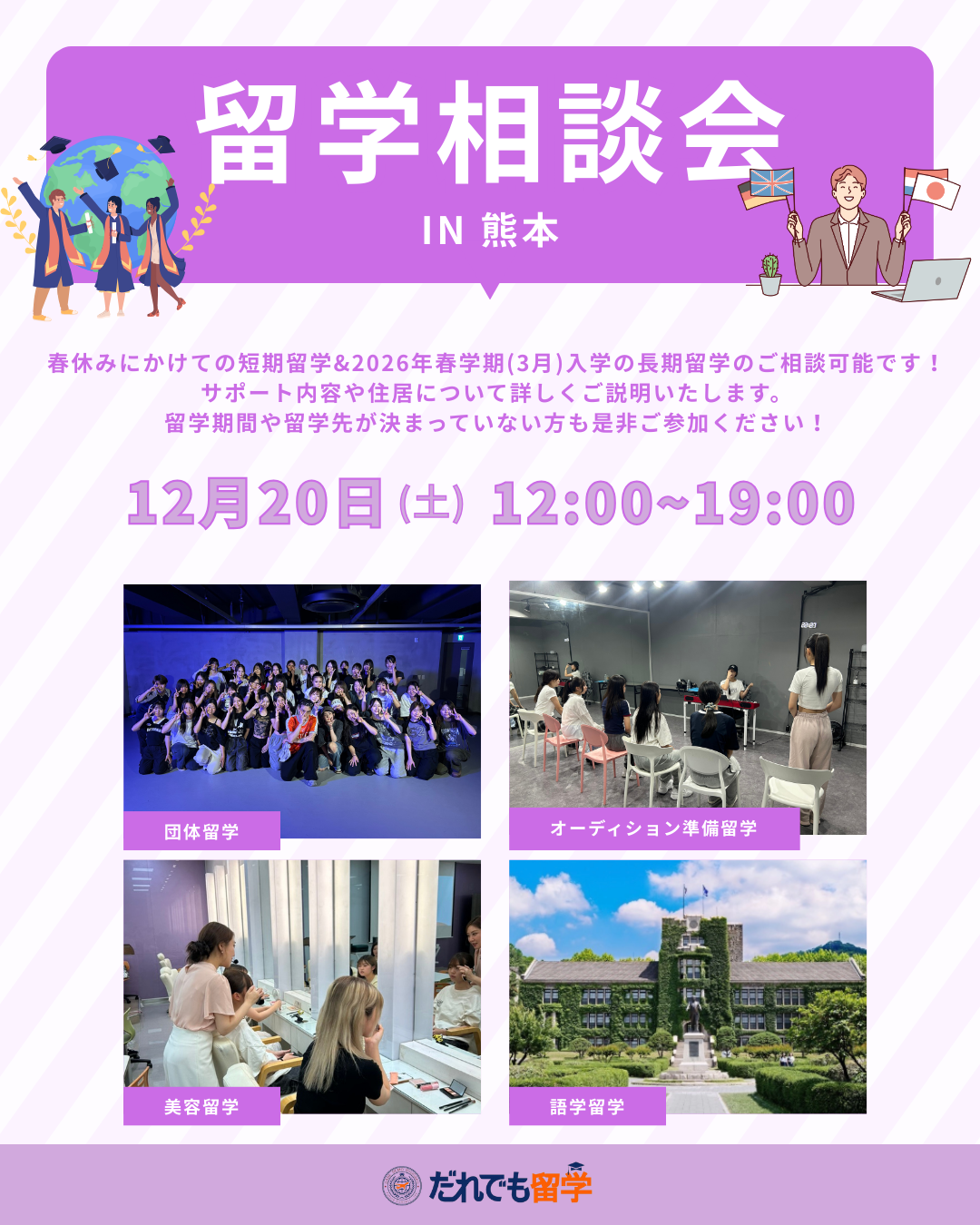 だれでも留学の人気のプログラムについて個別に相談できる【留学進学相談会】を熊本で開催いたします。