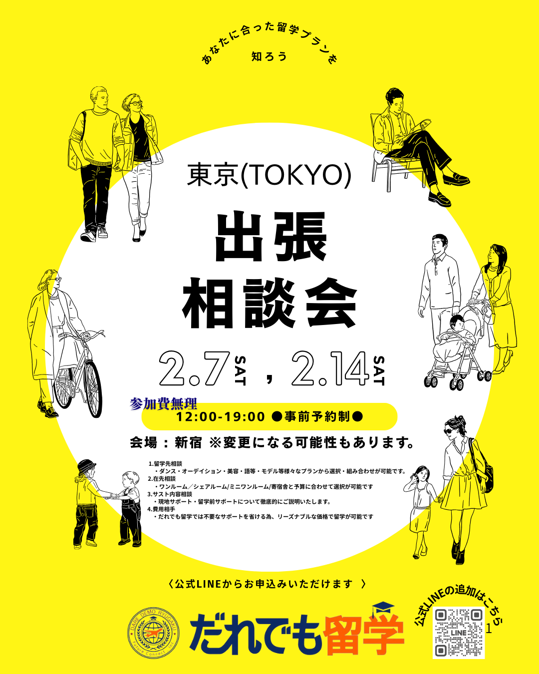 だれでも留学の人気のプログラムについて個別に相談できる【留学相談会】を東京で開催いたします。留学を考えていらっしゃる方、この機会に是非お気軽にお越しくださいませ。もちろん、ダンス留学やスキル留学などその他の留学も相談可能です。だれでも留学のカウンセリングは無理な勧誘などは一切ございません^^